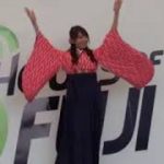 白を基調に南国をイメージして水色やグリーンの花を入れて明るい雰囲気に荒井つかさ写真集発売記念イベント