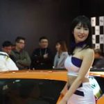 モーターショーでスレンダー美女コンパニオンのおねえさん